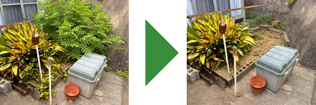 (アスファルトの隙間やテナント裏など、少しの量だが自分では難しい)